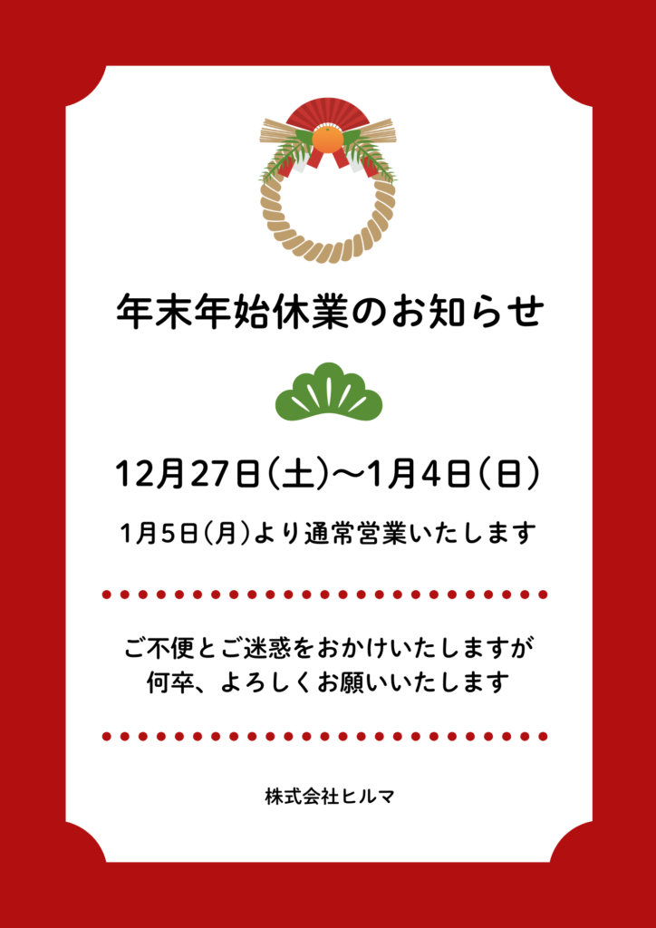 お知らせ2025年12月1日年末年始休業のお知らせ